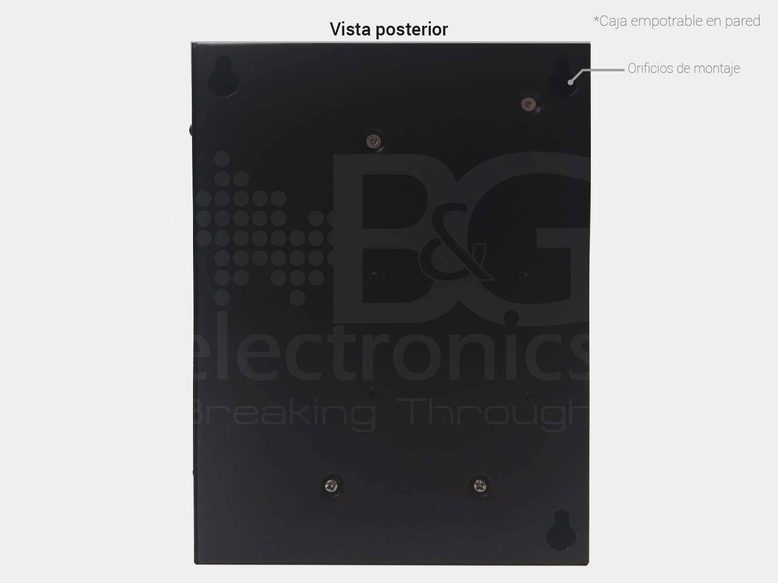 El módulo tiene orificios de anclaje en pared para instalación ágil y segura.