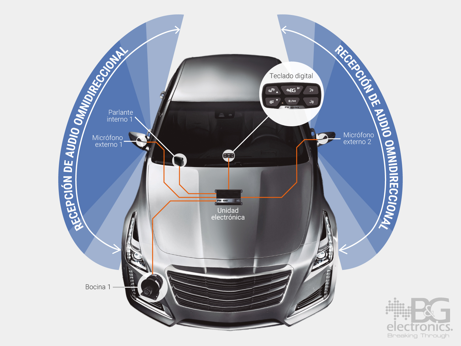 Sistema oculto de intercomunicación, perifoneo y sirenas, especialmente diseñado para vehículos blindados. El complemento perfecto para el máximo aprovechamiento del blindaje buscando la reducción de amenazas creando canales de comunicación con el exterior, sin necesidad de abrir ventanas o puertas y generando vías de escape con los diferentes tipos de sirena.