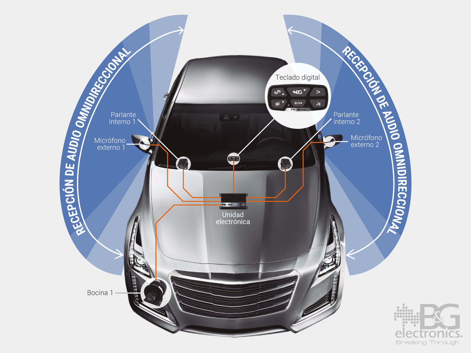 Sistema oculto de intercomunicación, perifoneo y sirenas, especialmente diseñado para vehículos blindados. El complemento perfecto para el máximo aprovechamiento del blindaje buscando la reducción de amenazas creando canales de comunicación con el exterior, sin necesidad de abrir ventanas o puertas y generando vías de escape con los diferentes tipos de sirena.