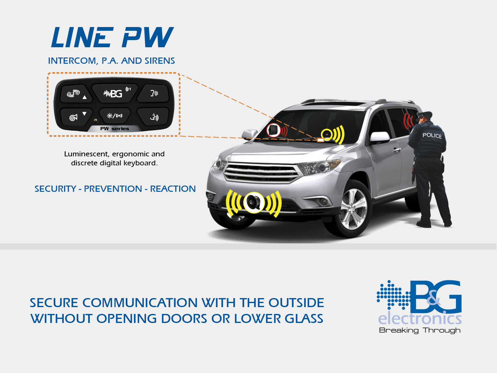 • 4 Selectable continuous sirens (PHASER, YELP, WAIL, Hi-Lo)