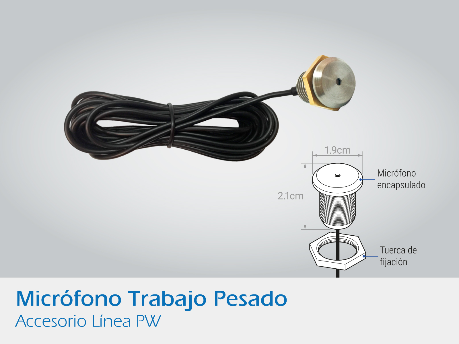 Micrófono externo encapsulado en una base metálica para atornillar a la superficie de montaje.