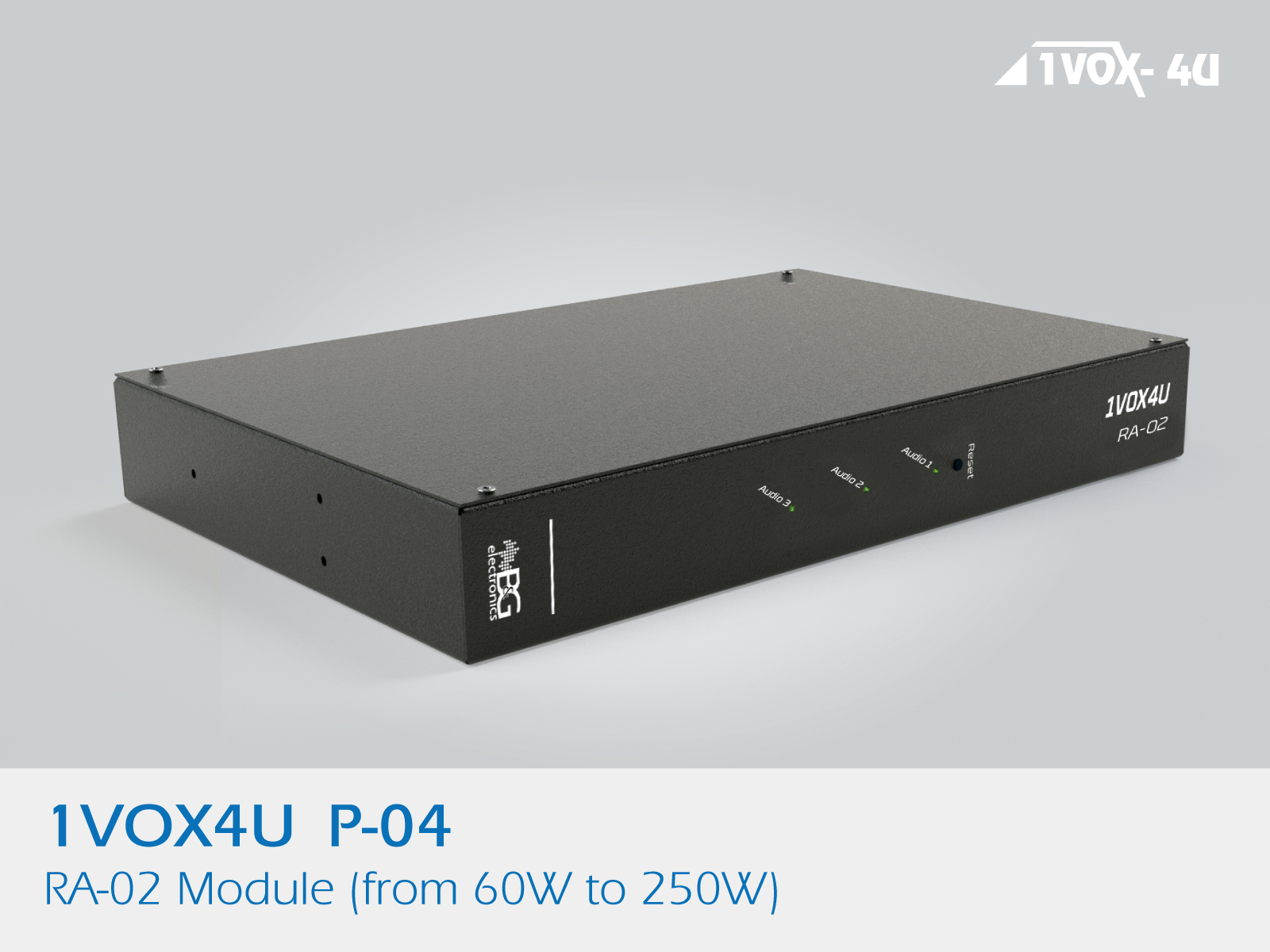 The RA-02 is an amplifier that allows you to expand the audio signal of any of the IP modules increasing the sound coverage by placing more speakers within the same zone.