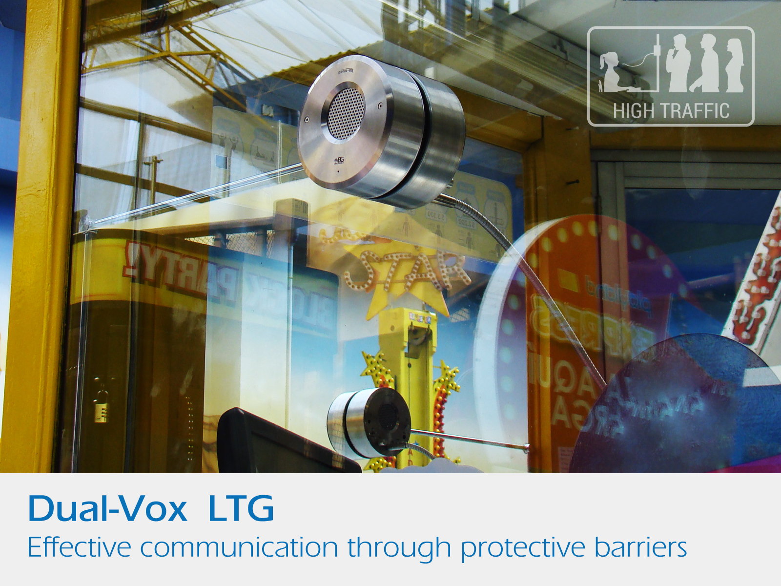 Intercom for window and partitions mounting. Ideal for high traffic areas where ambient noise conditions make communication difficult.
