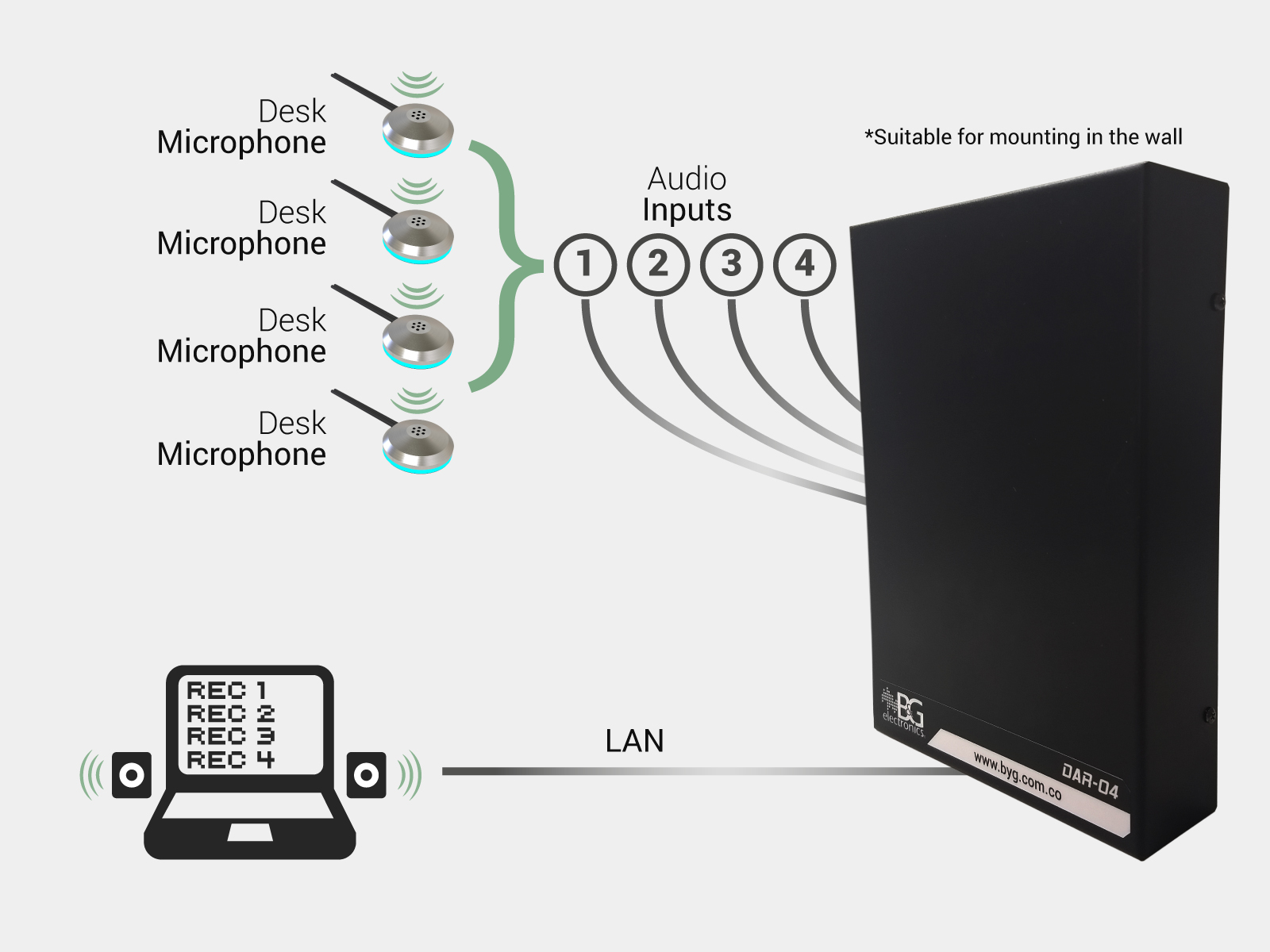 Microphone for use with the DAR digital audio recorder. It projects an excellent corporate image thanks to its elegant presentation with steel finishes.